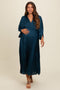 Forest Green Satin Pleated V-Neck Maternity Maxi Dress