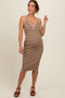 Forest Green Striped Fitted Henley Knit Maternity Midi Dress