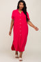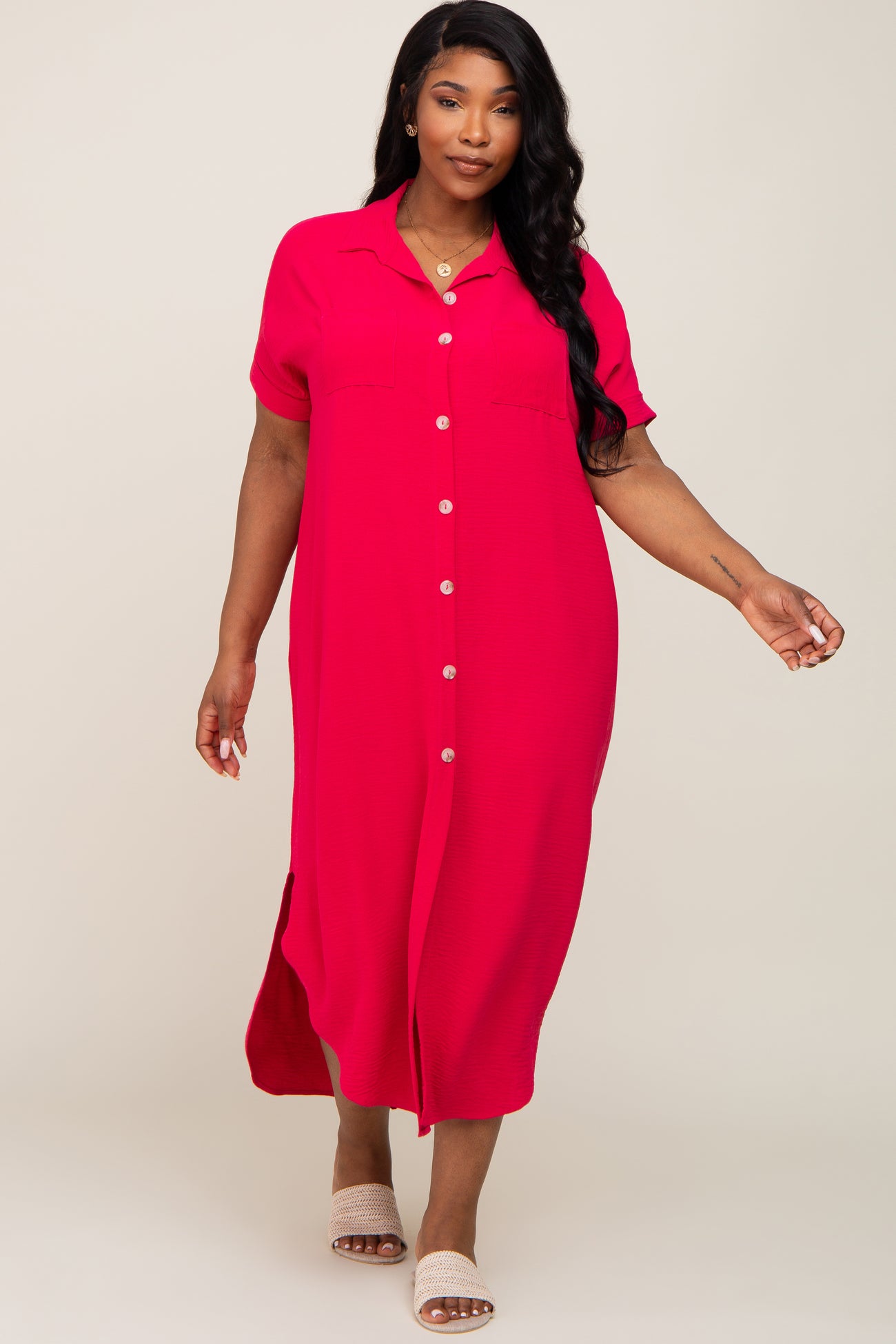 Fuchsia Button Down Hi Low Maternity Plus Maxi Dress