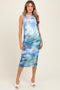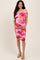Fuchsia Floral Mesh Off Shoulder Halter Maternity Midi Dress