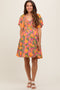 Fuchsia Floral Smocked Short Puff Sleeve Tiered Maternity Maxi Dress