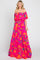 Fuchsia Floral Strapless Flounce Maxi Dress