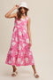 Fuchsia Floral Tiered Sleeveless Maternity Midi Dress