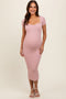 Fuchsia Floral V-Neck Tiered Maternity Midi Dress