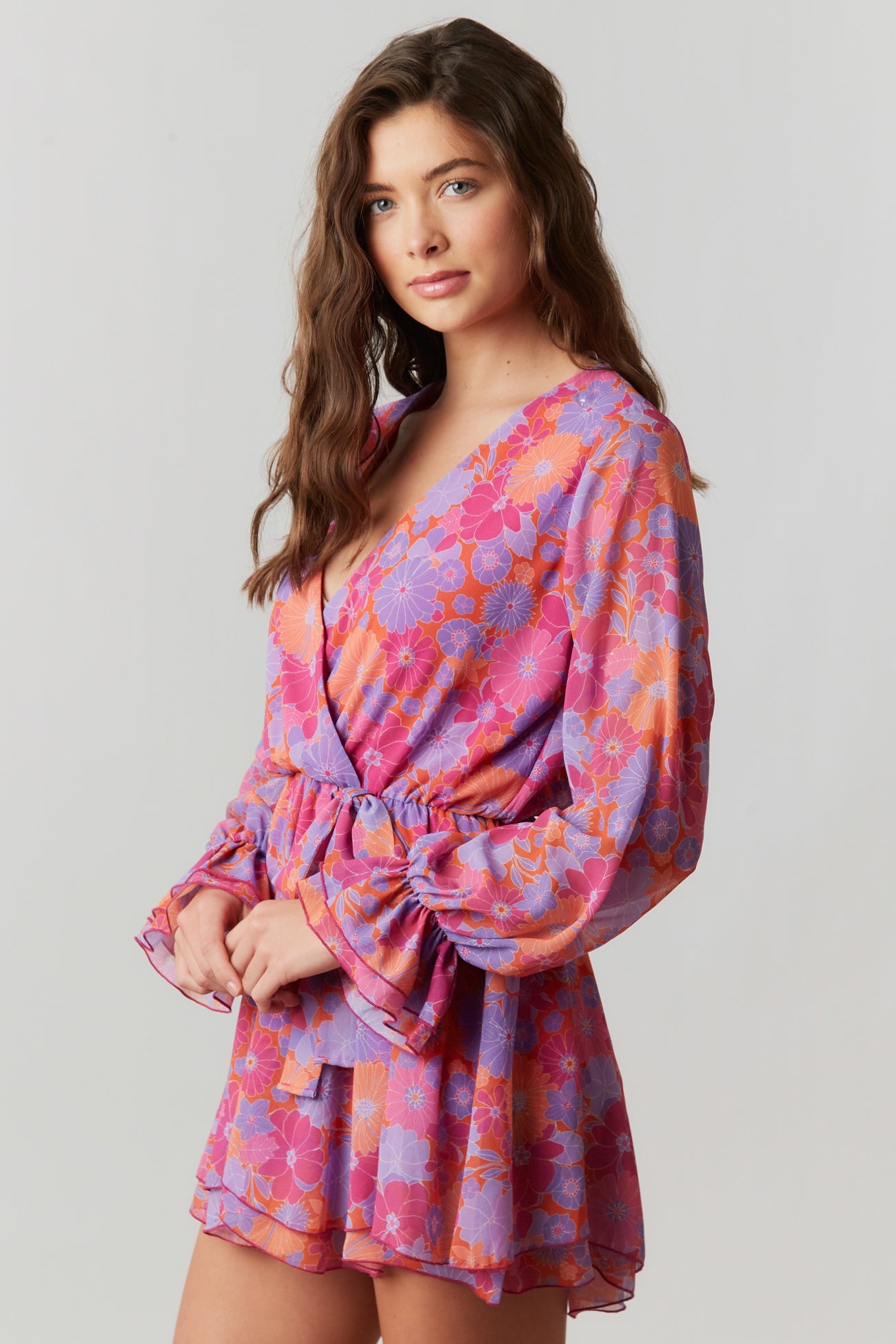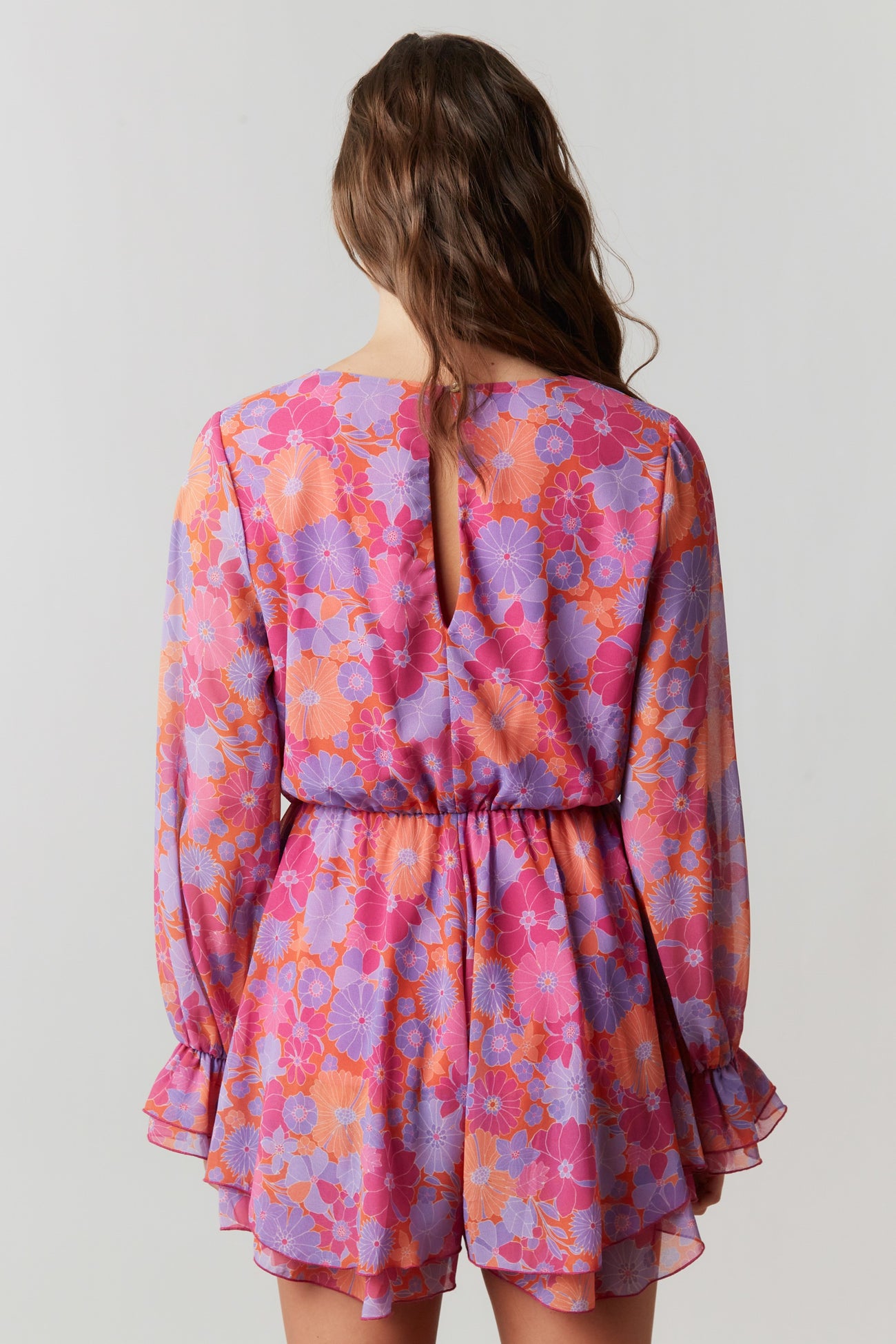Fuchsia Multi Floral Chiffon Surplice Romper