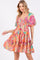 Fuchsia Printed Smocked Puff Sleeve Dress