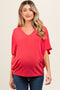A satin top featuring a button front, a collared neckline and short dolman sleeves.