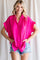 Fuchsia Satin Button Front Collared Short Sleeve Top