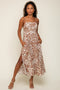 A sleeveless sequin dress featuring a ruffle hem, a rounded neckline and a back keyhole cutout with a button closure. Double lined.