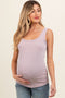Fuchsia Striped Knit V-Neck Short Sleeve Maternity Top