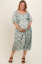 Details A watercolor floral maternity plus size midi dress featuring short puff sleeves, a tiered skirt, side pockets, a ruffle hem and a rounded v-neckline. Content + Care