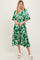 Green Abstract Floral V-Neck Tiered Midi Dress