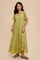 A solid maxi dress with short sleeves, v-neckline, button detail on chest, and tiered skirt. Dress is double lined.