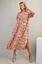 Green Embroidered V-Neck Short Pom Sleeve Maternity Midi Dress