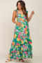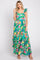 Green Floral Chiffon Square Neck Ruffle Maxi Dress