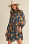 Floral maxi dress with a smocked top, ruffle sleeves, and side pockets. Double lined.