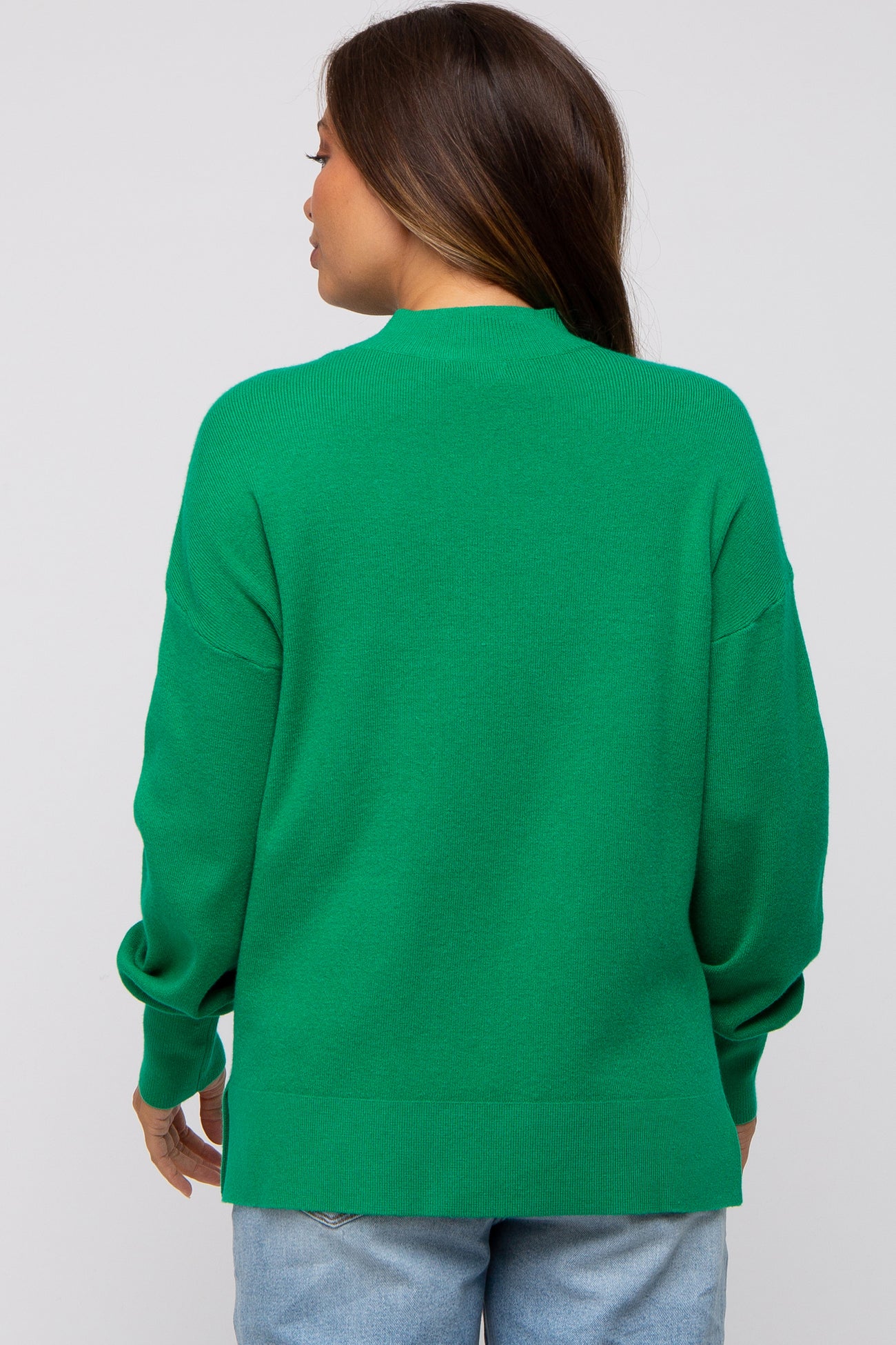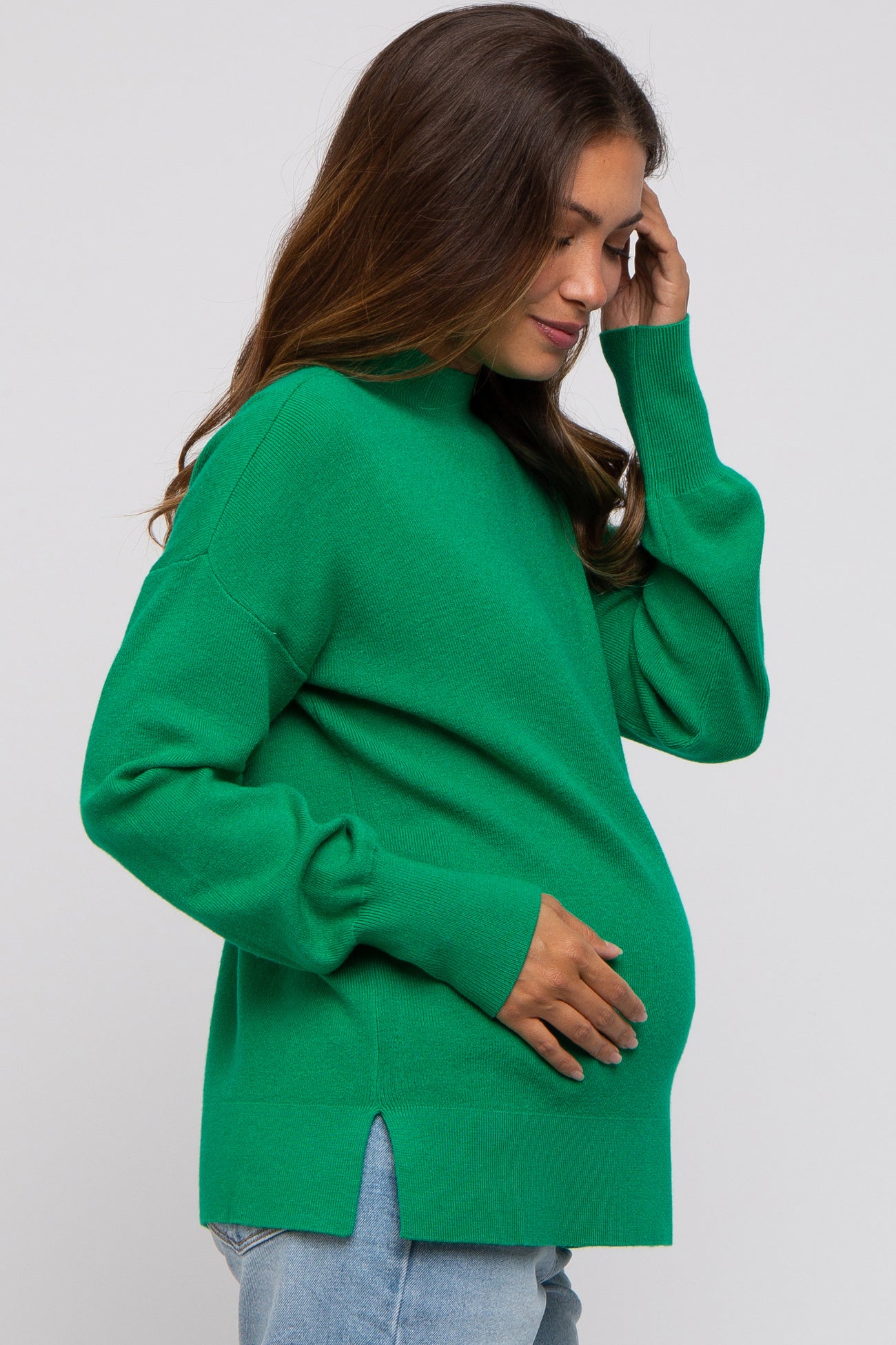 Green Knit Mock Neck Maternity Long Sleeve Top