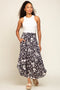 A palm printed maxi dress featuring a v-neckline, a front knot twist, a front cutout, adjustable cami straps, a smocked elastic back and a ruffle hem.