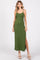 A sleeveless ribbed dress featuring adjustable cami straps, a side slit and a rounded neckline.