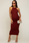A solid satin maternity midi dress featuring a button down front, short sleeves, a gathered body, a waist tie and a collared neckline.