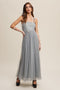 A maternity maxi dress featuring a square neckline, adjustable tie straps and a tulle A-line skirt.