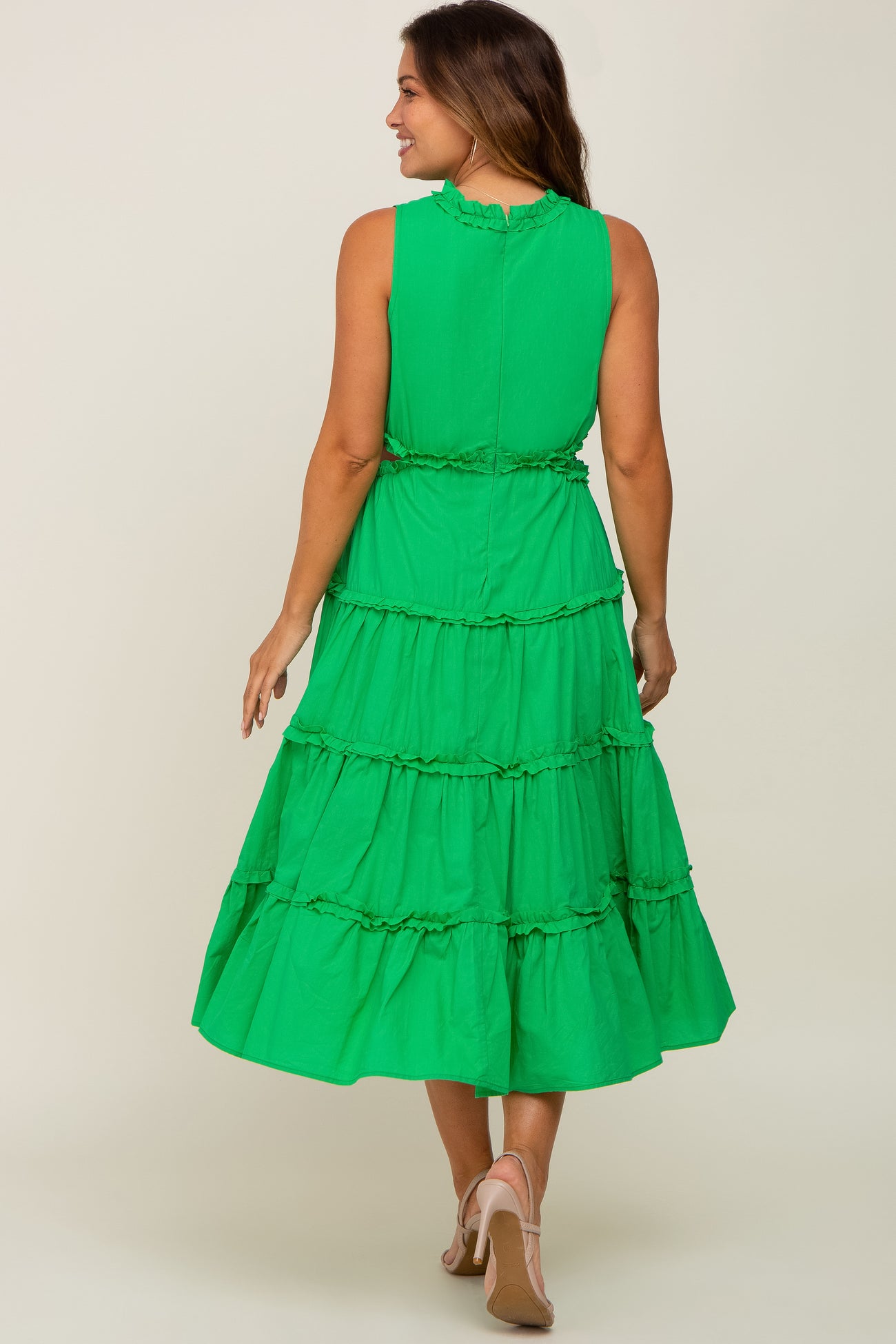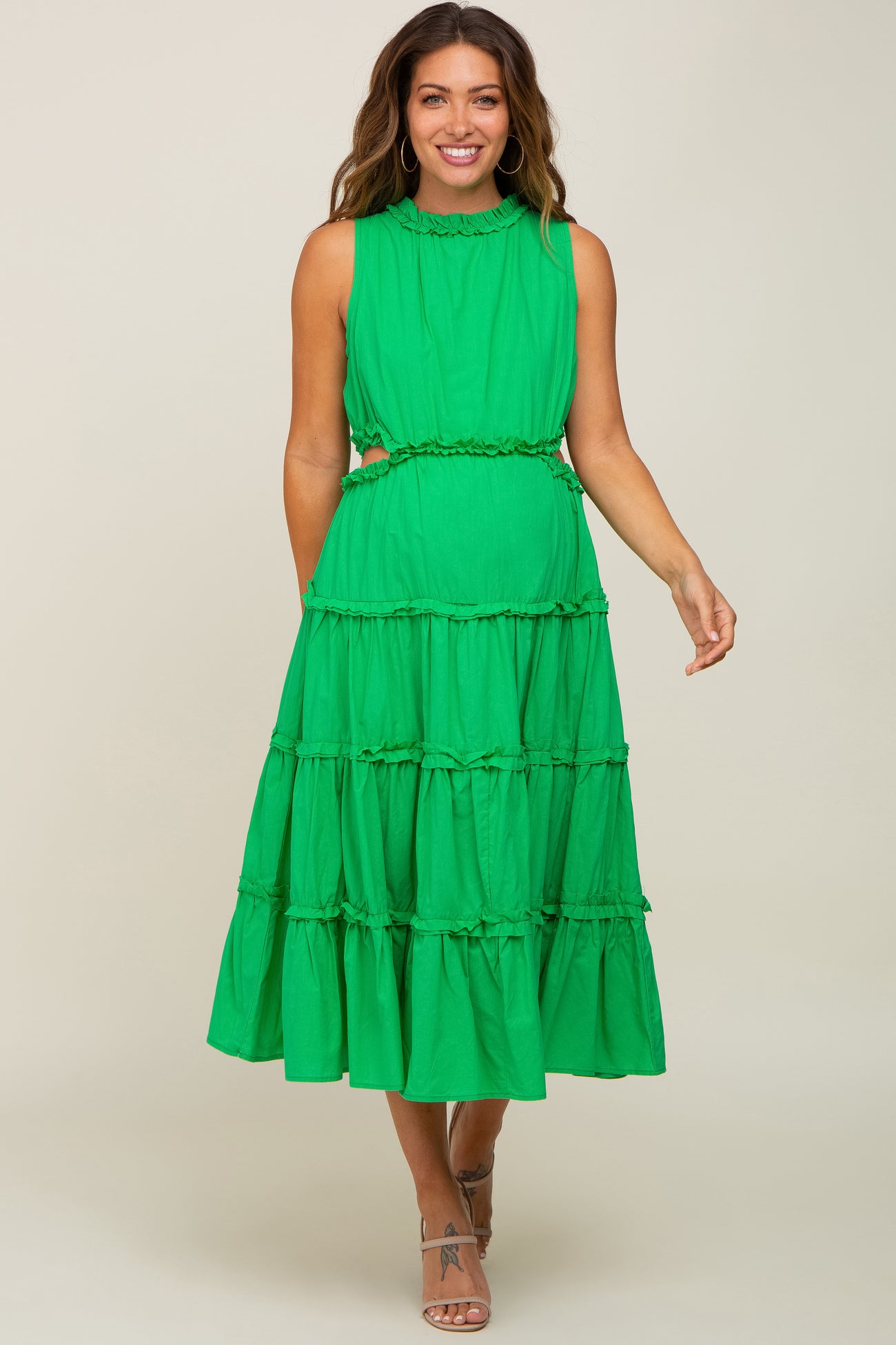 Green Tiered Ruffle Cutout Maternity Midi Dress