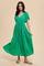 Green V-Neck Flutter Short Sleeve Midi Dress