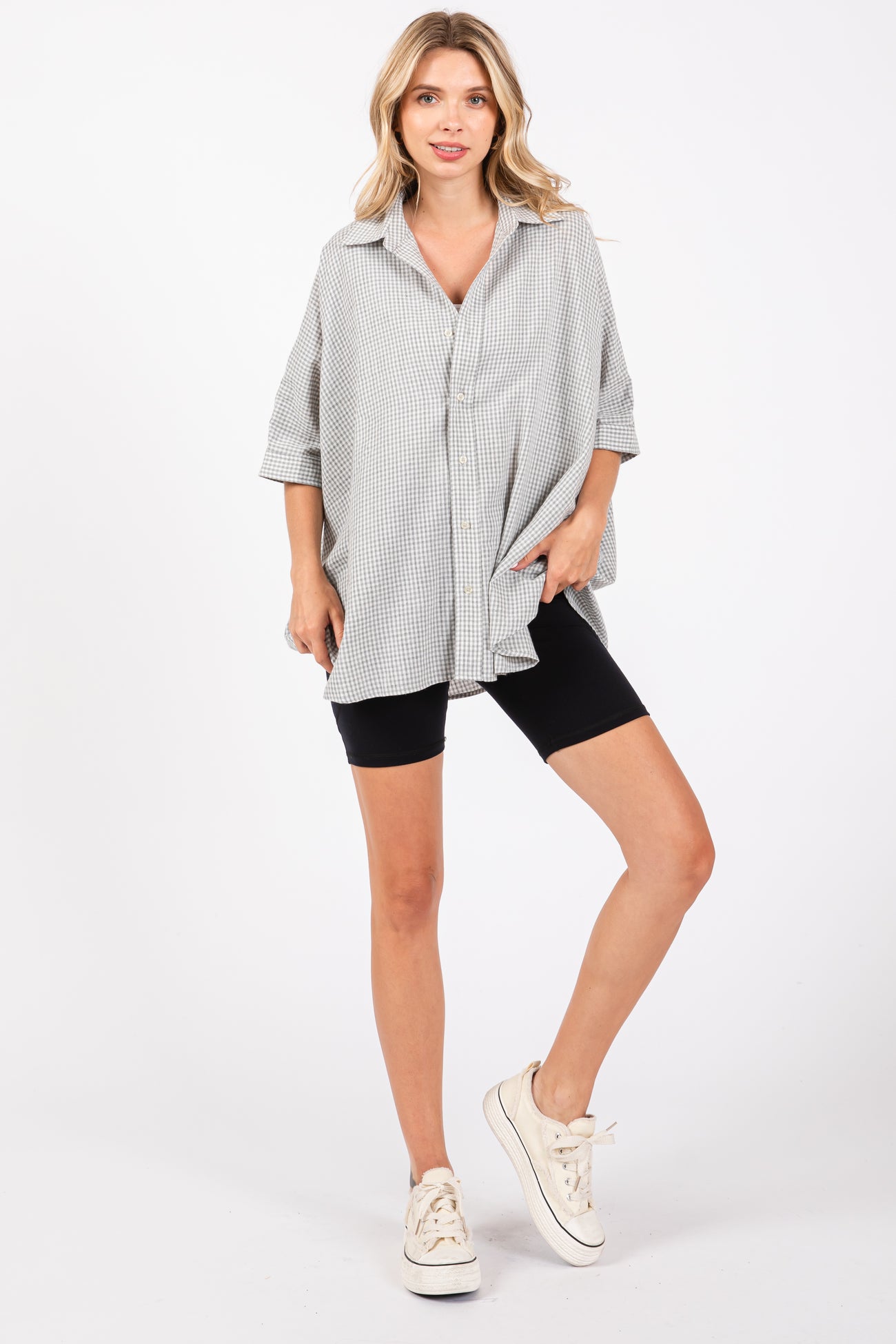 Grey Checkered Oversized Button Down Shirt