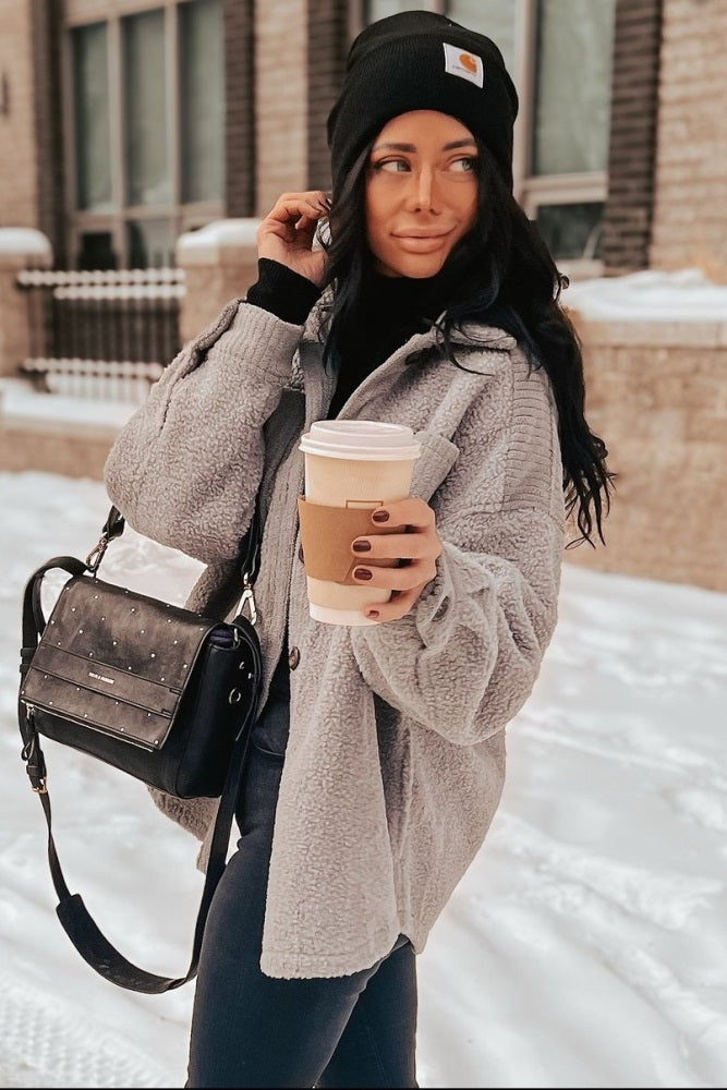 Grey Colorblock Fleece Shirt Jacket