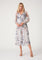 A floral mesh midi dress with a v-neckline, long sleeves, and a smocked waist. Includes a slip that has adjustable straps.