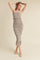 A floral midi dress featuring a smocked elastic body with ruffle trim tiers and adjustable cami straps.