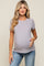 A solid hued maternity top featuring short sleeves and a rounded neckline.