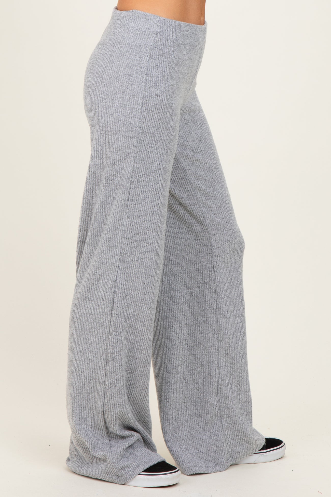 Experience effortless comfort and style with our Heather Grey Brushed Knit Flare Leg Pants. Crafted from a soft, ribbed knit fabric with a brushed finish, these pants offer a cozy feel and a flattering silhouette. The high-rise waistband ensures a secure fit, while the wide flare leg adds a trendy, retro-inspired touch. Perfect for lounging at home or elevating your casual look, these versatile pants pair beautifully with oversized sweaters, fitted tops, or your favorite sneakers. Stay stylishly comfortable all day long with these must-have flare leg pants. Available in Heather Grey for easy mix and match.
