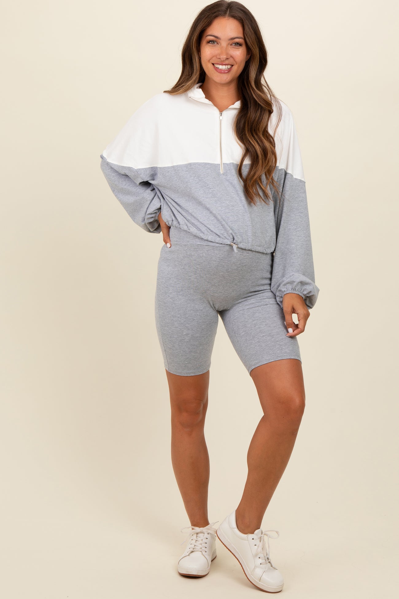 Heather Grey Colorblock Hoodie Shorts Maternity Set