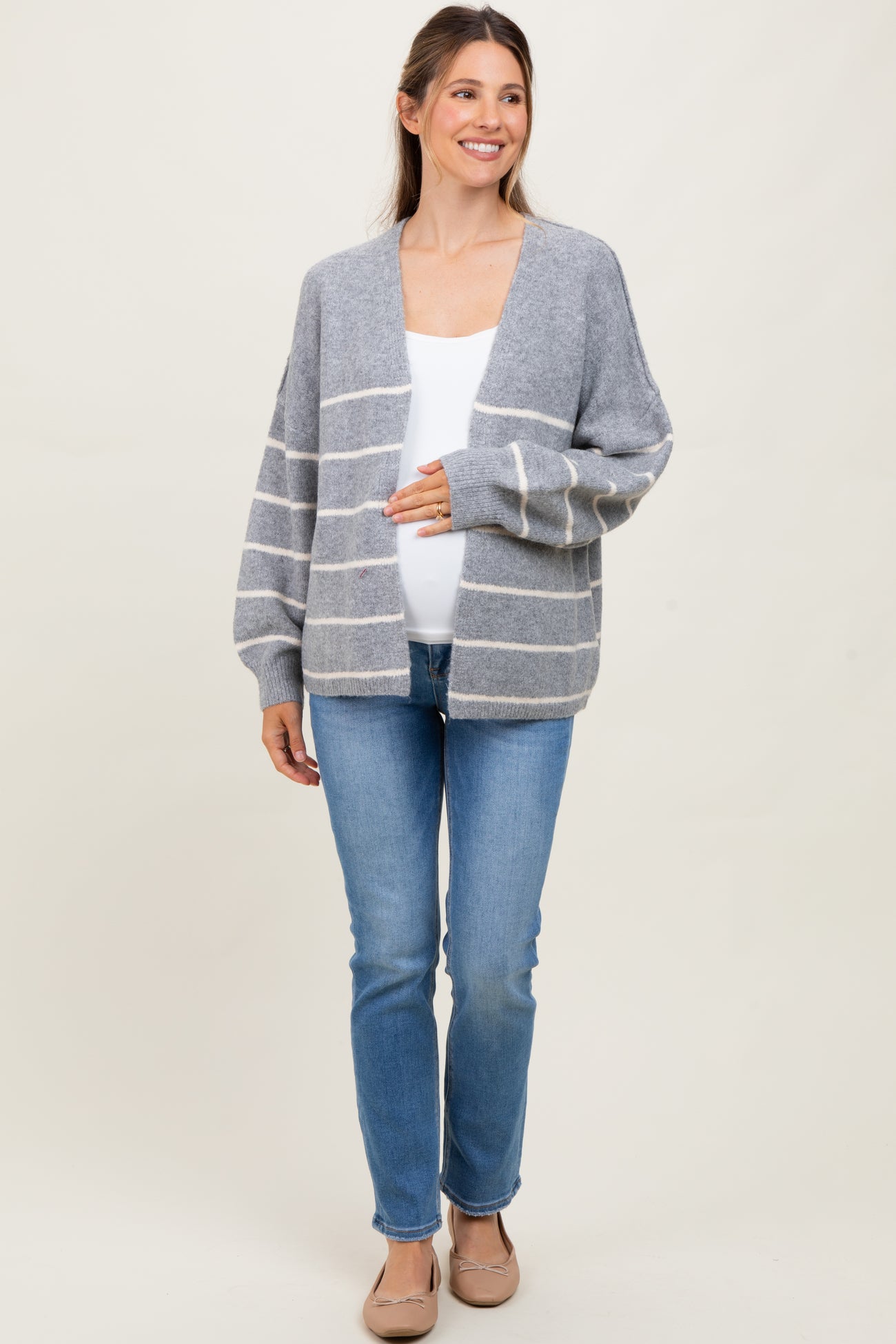 Stay cozy and stylish in our Heather Grey Striped Oversized Maternity Cardigan. Crafted from a soft, plush fabric, this cardigan features a relaxed fit with subtle white stripes for a timeless look. Designed to comfortably accommodate your growing bump, its open front and long sleeves offer versatile layering for any season. The oversized silhouette enhances comfort and ease of movement, making it perfect for casual outings or relaxing at home. Pair it effortlessly with your favorite maternity jeans or leggings for an everyday chic ensemble. Easy to care for and a maternity essential you’ll love wearing again and again.