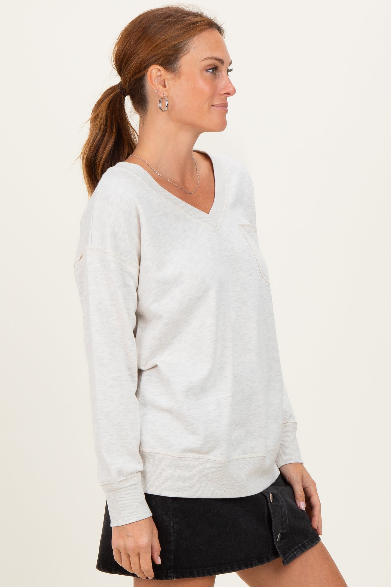 Heather Grey V-Neck Long Sleeve Pullover Top