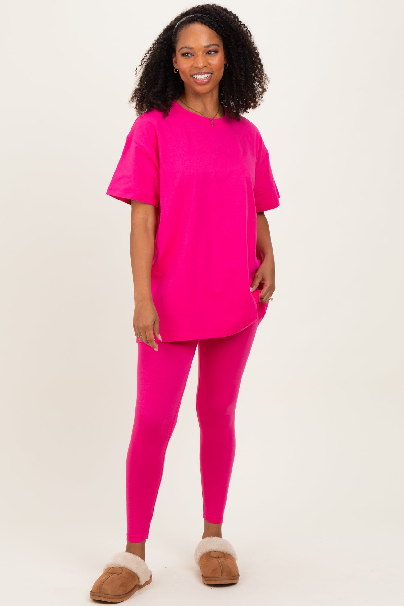 Hot Pink Oversized Crewneck Short Sleeve and Legging Maternity Set