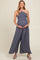 Indigo Back Cutout Smocked Halter Wide Leg Maternity Jumpsuit
