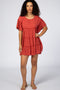 A floral printed maxi dress with a cinched off shoulder detail with damask printed trim, cinched ruffle sleeves, button detail neckline, cinched waistline with sash tie, dmask printed trim hemline.