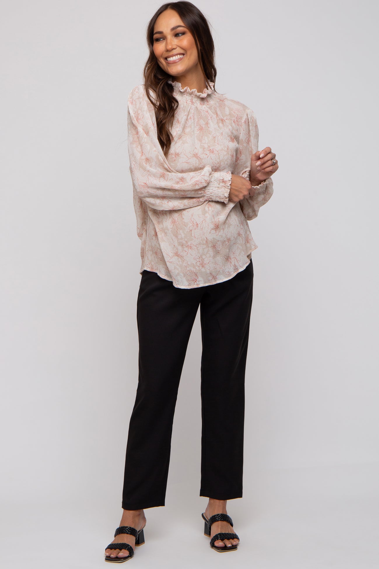Ivory Floral Plisse Mock Neck Maternity Blouse