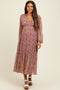 Ivory Floral Ruched Side Slit Midi Dress