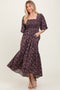 Ivory Floral Smocked Hi-Low Puff Sleeve Maxi Dress