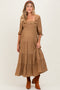 Ivory Floral Smocked Ruffle Strap Maternity Midi Dress