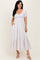 Step into effortless elegance with our Ivory Floral Stripe Tiered Maxi Dress. Crafted from lightweight fabric, this dress features a smocked bodice that gently hugs your silhouette while the tiered skirt flows gracefully with every move. The delicate floral stripes add a fresh, feminine touch, perfectly complemented by the sweet square neckline and puff sleeves. Designed for comfort and style, it also includes convenient side pockets. Ideal for brunches, garden parties, or casual outings, pair it with strappy sandals or heels for a chic, laid-back look. Embrace timeless charm with this versatile maxi dress.