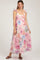Details A floral maternity midi dress with a scoop neckline, ruffle cap sleeves, adjustable straps, a tie back closure, a hi-lo hem, and a back cutout. Content + Care