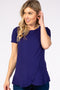 A solid hued short sleeve maternity nursing top featuring a wrap front accent and a rounded neckline.