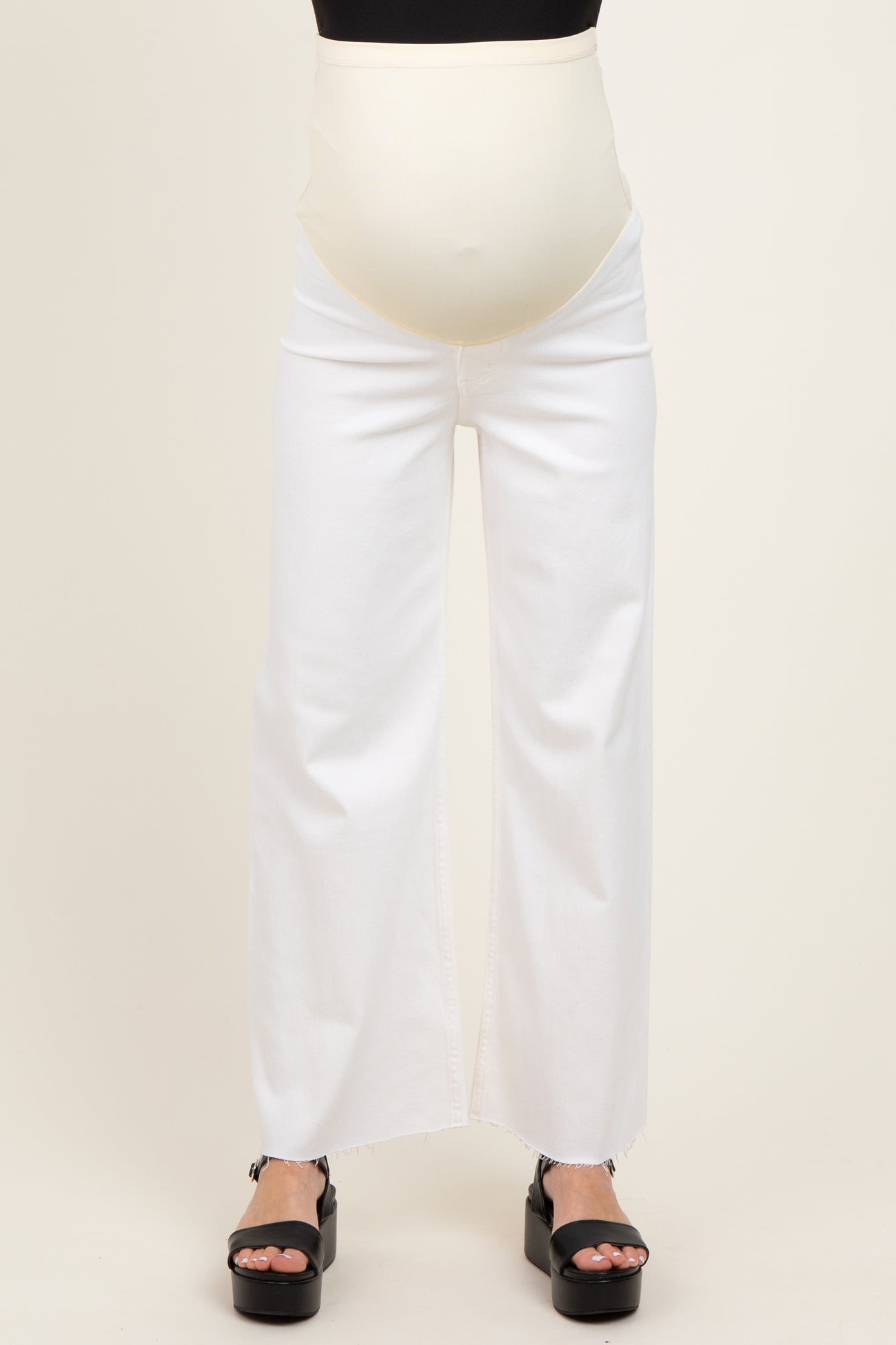 Ivory Raw Hem Wide Leg Maternity Jeans