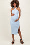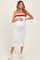 Ivory Ribbed Knit Striped Strapless Fitted Maternity Midi Dress