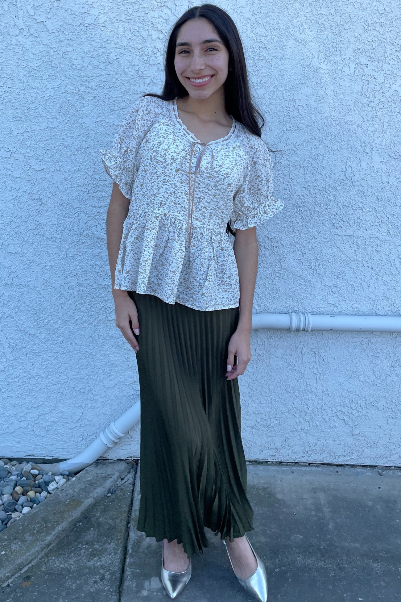 Ivory Taupe Ditsy Floral Blouse
