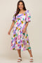 Ivory Watercolor Print Puff Sleeve Midi Dress